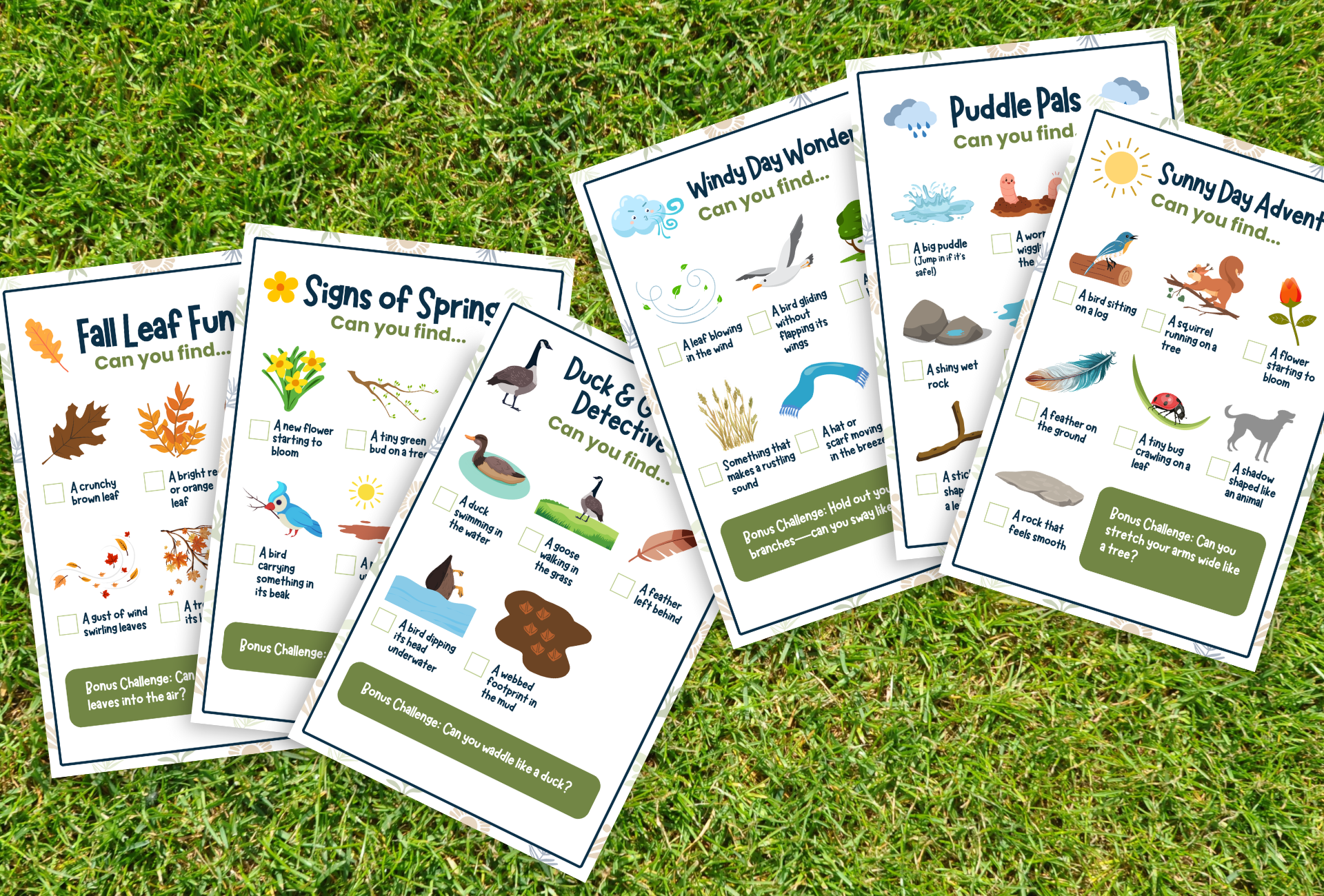 We start each day with a peaceful trail walk—about two-thirds around the lake. This helps calm busy minds, regulate emotions, and ease energy, creating space for children to connect with nature, friends, and their teachers. Along the way, we use fun I Spy-style scavenger hunt cards to encourage observation and curiosity.